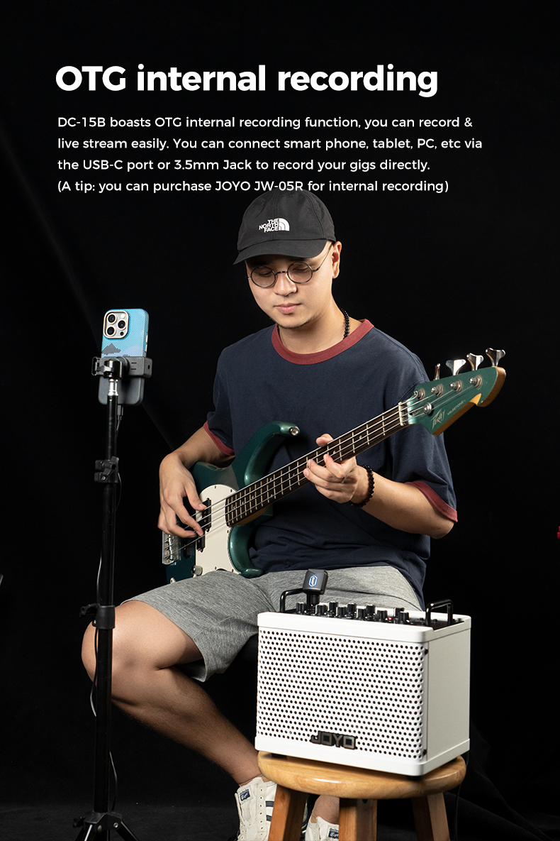 O DC-15B possui função de gravação interna OTG, permitindo gravar e transmitir ao vivo com facilidade. Você pode conectar smartphone, tablet, PC, etc., através da porta USB-C ou do conector de 3,5 mm para gravar seus shows diretamente.