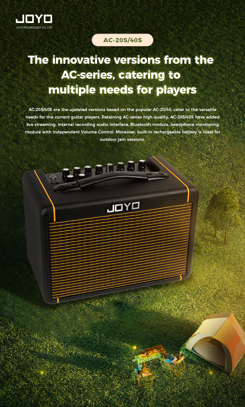 Os AC-20S/405 são versões atualizadas baseadas no popular AC-20/40, atendendo às necessidades versáteis dos guitarristas atuais. Mantendo a alta qualidade da série AC, os AC-20S/40S contam com streaming ao vivo, interface interna de gravação de áudio, módulo Bluetooth e módulo de monitoramento de fone de ouvido com controle de volume independente. Além disso, a bateria recarregável integrada é ideal para tocar sua música favorita ao ar livre.