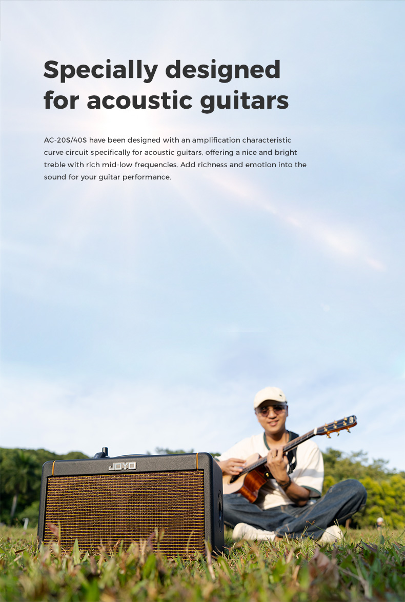 Os AC-20S/40S foram projetados com um circuito de curva característica de amplificação específico para violões, oferecendo agudos agradáveis e brilho com frequências médias e graves ricas.