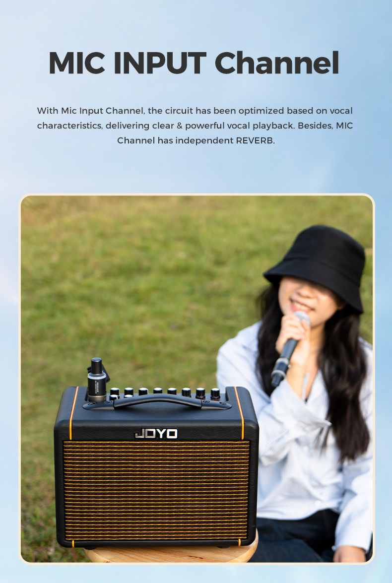 Com o Canal de Entrada de Microfone, o circuito foi otimizado com base nas características vocais, proporcionando uma reprodução vocal nítida e potente. Além disso, o Canal de Microfone possui REVERB independente.