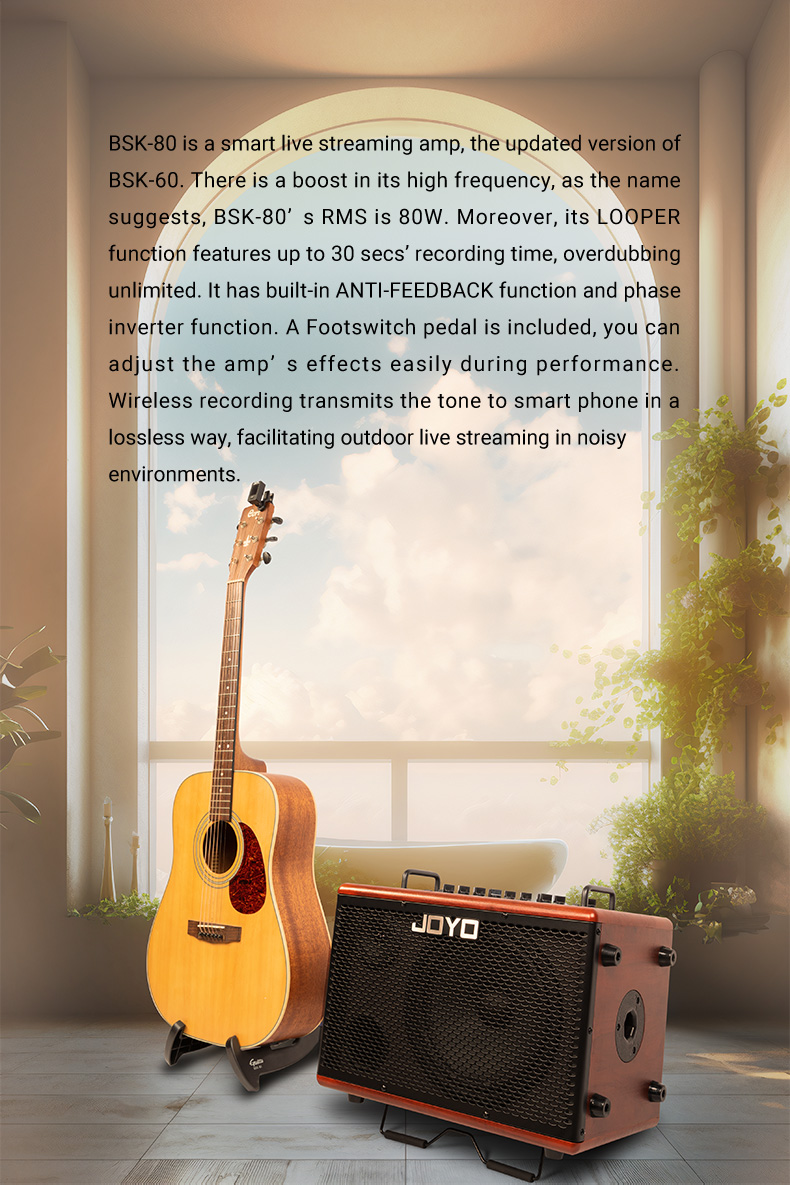 O BSK-80 é um amplificador inteligente para transmissão ao vivo, a versão atualizada do BSK-60.