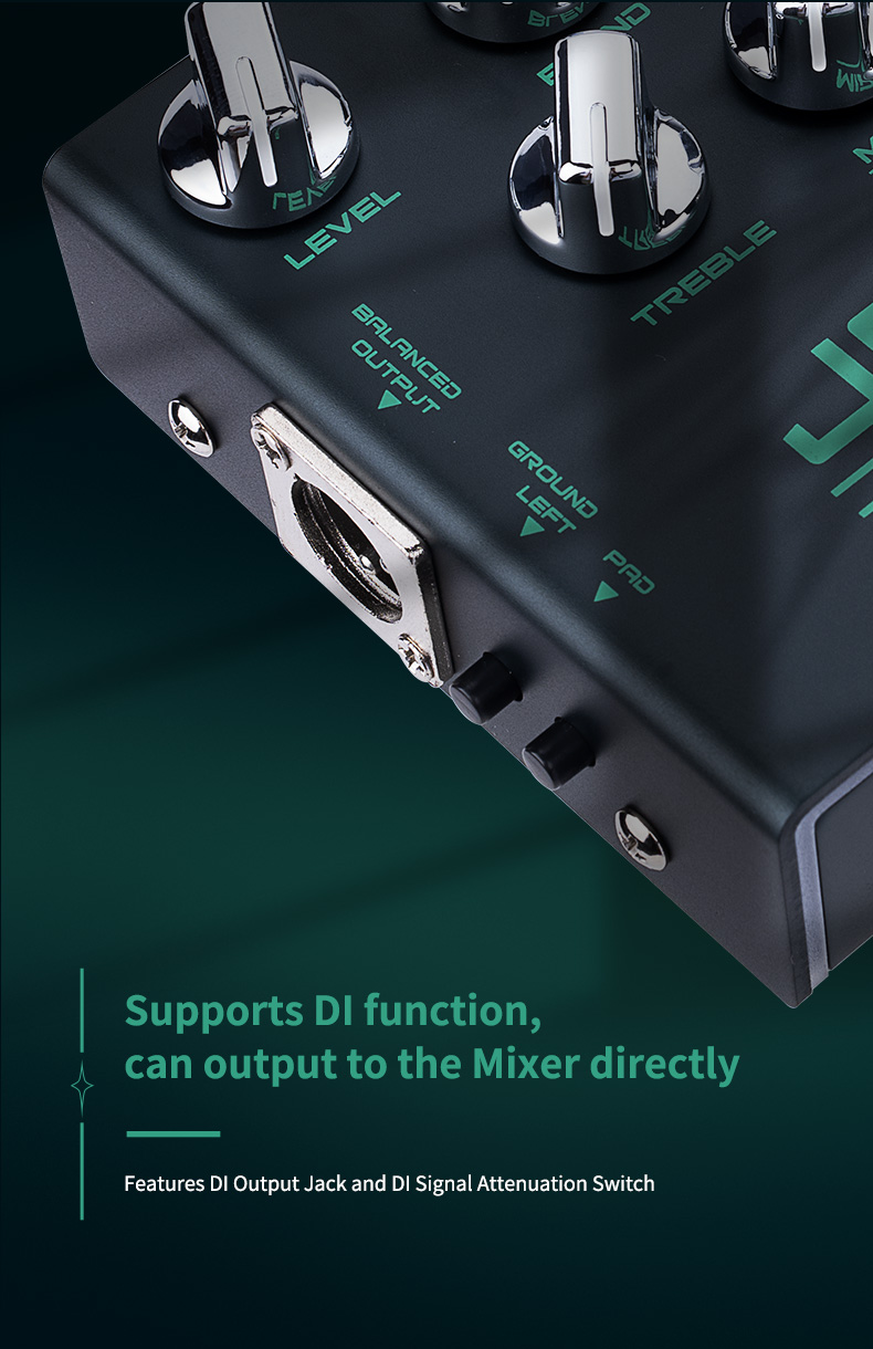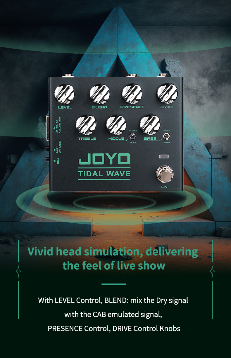 Com botões de controle precisos para Nível, Mistura, Presença e Drive, você tem controle total sobre o seu timbre. O pedal também inclui um conector de saída DI e um seletor de sinal emulado por CAB para integração perfeita ao seu setup.