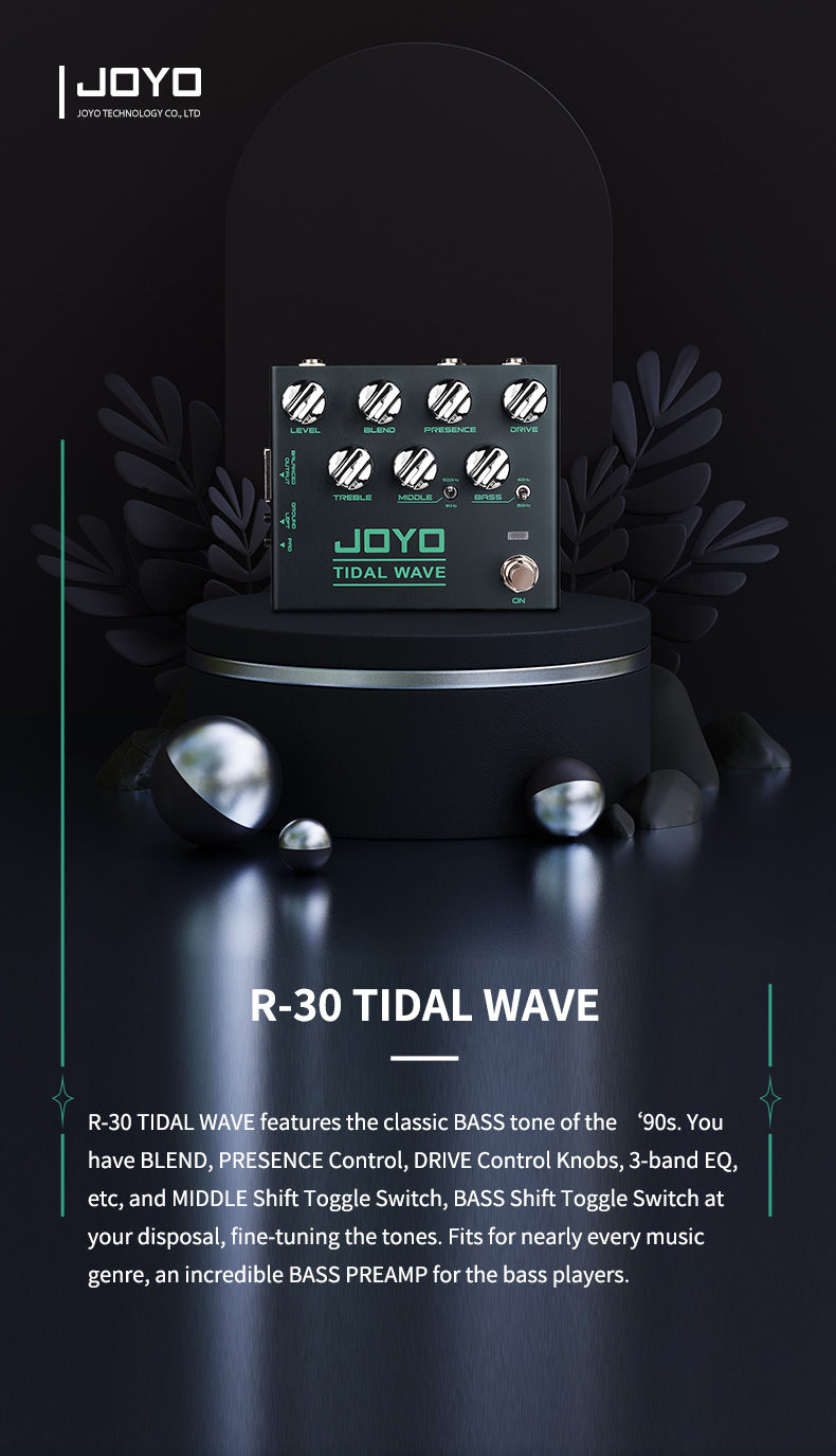 Pedal de Overdrive Pré-amplificador para Baixo JOYO R-30 Tidal Wave