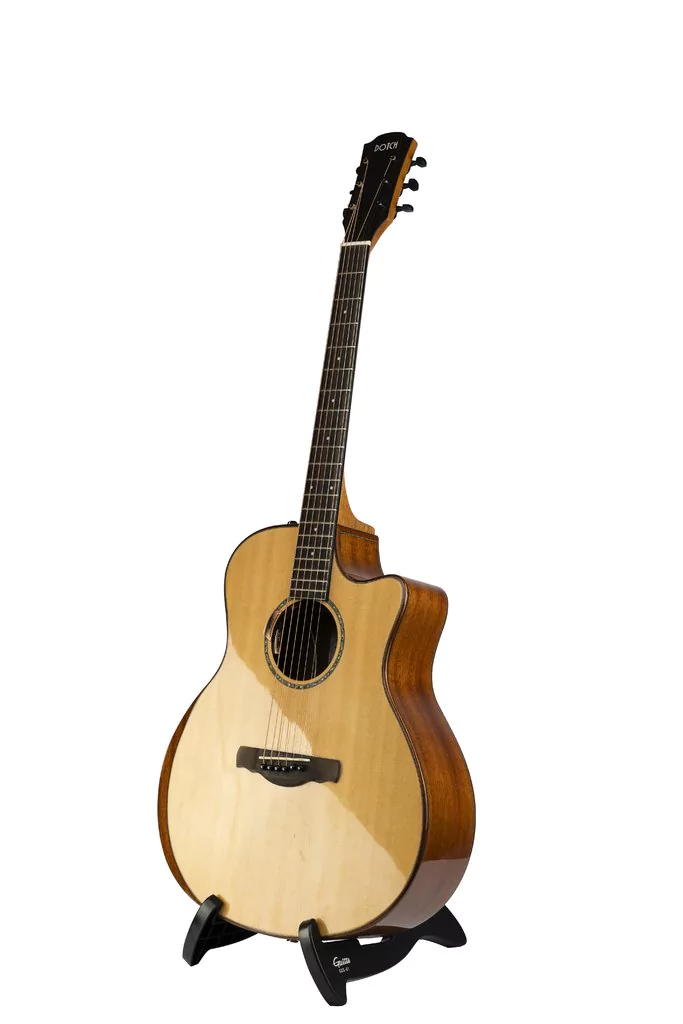 Estrutura triangular suporta a guitarra com firmeza